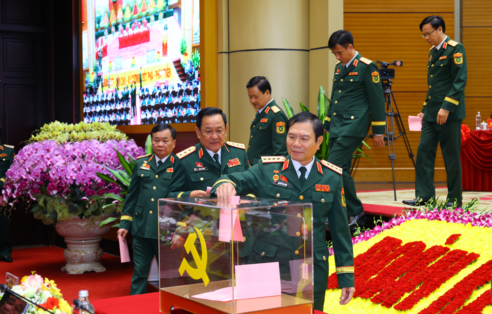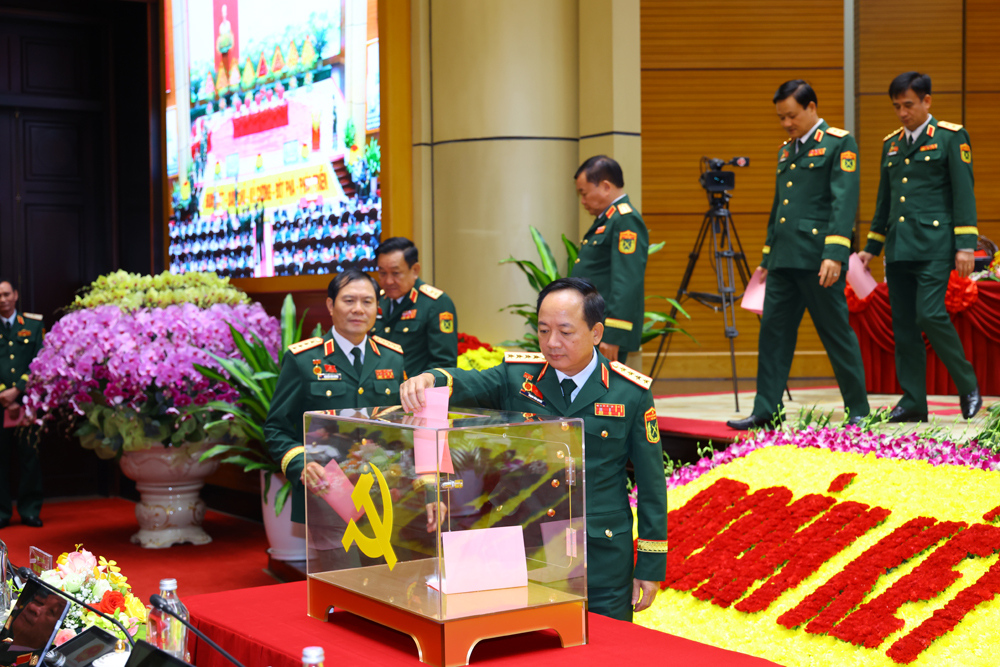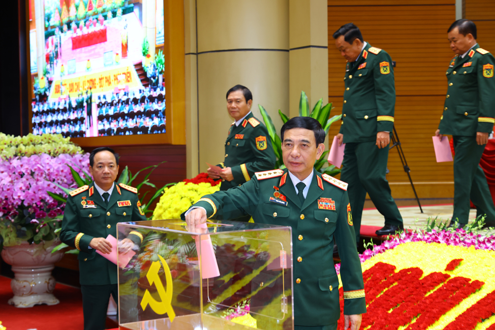 Đại tướng Phan Văn Giang bỏ phiếu bầu Đoàn đại biểu Đảng bộ Quân đội đi dự Đại hội lần thứ XIV của Đảng.