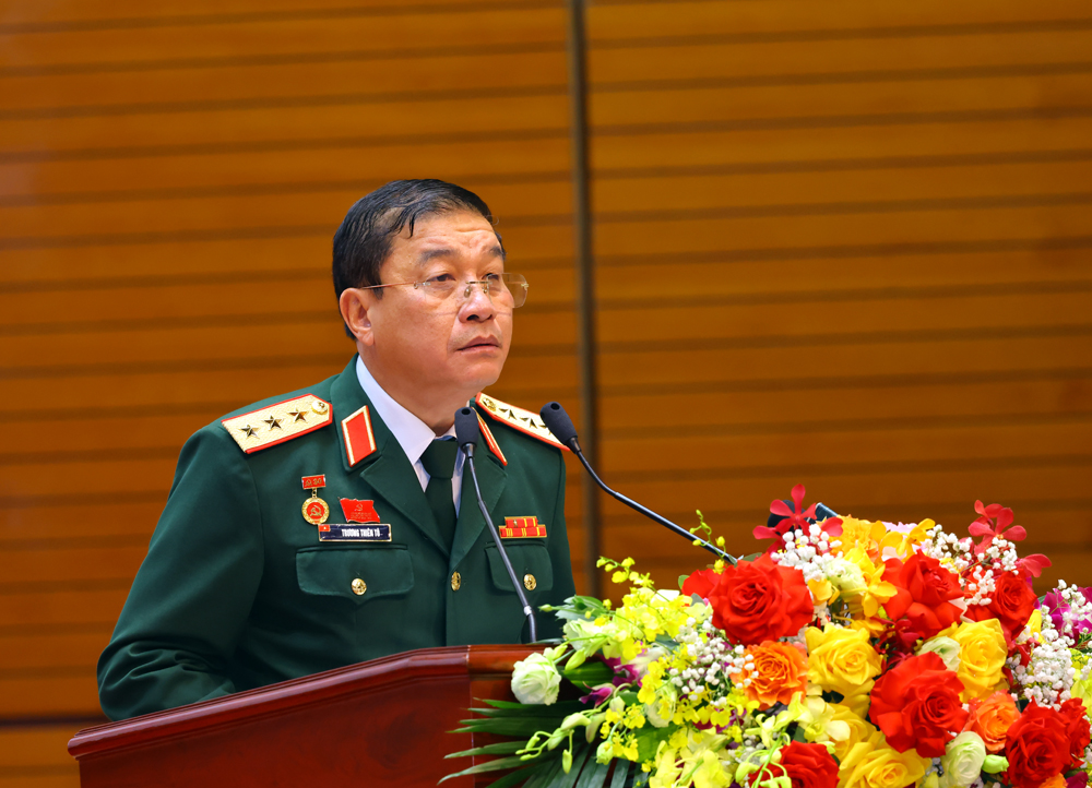 Thượng tướng Trương Thiên Tô phát biểu tại đại hội.