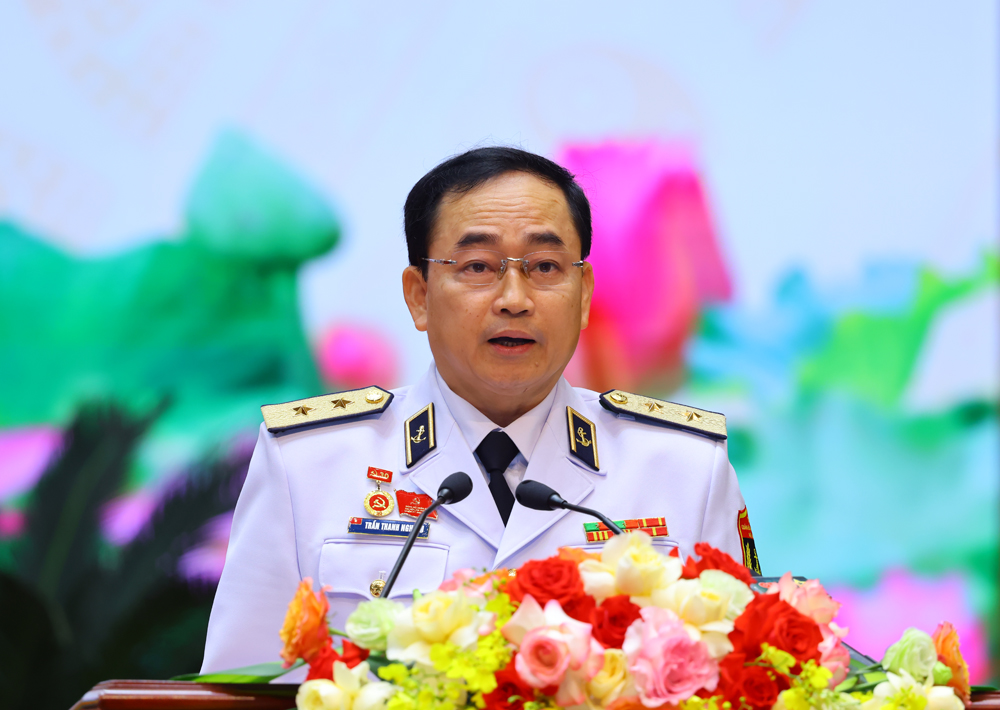 Phó Đô đốc Trần Thanh Nghiêm phát biểu tại đại hội.