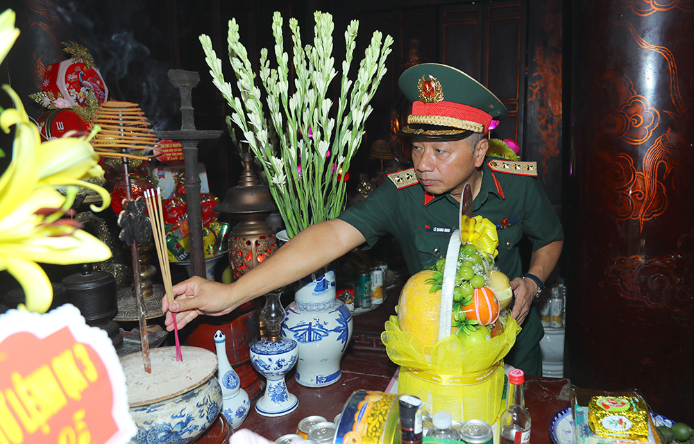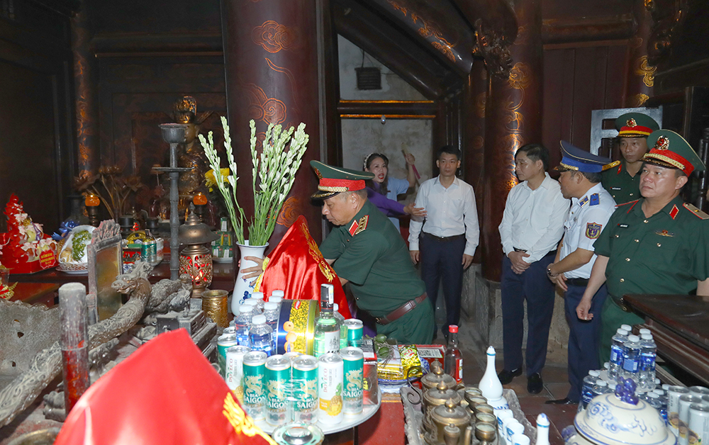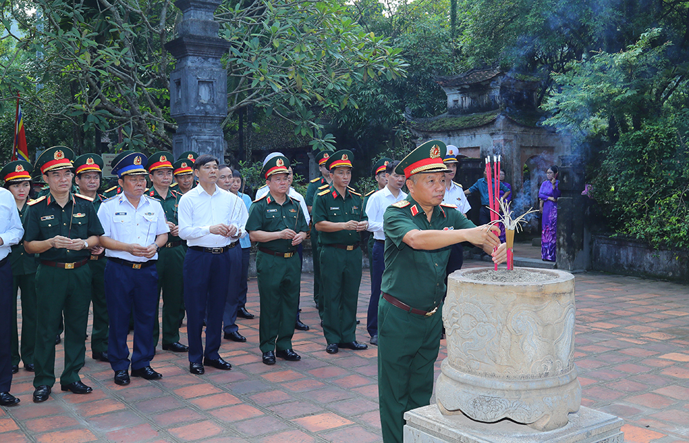 Thượng tướng Lê Quang Minh và các đại biểu dâng hương tưởng niệm tại Đền thờ Vua Lê Đại Hành trong Khu di tích Quốc gia đặc biệt Cố đô Hoa Lư.