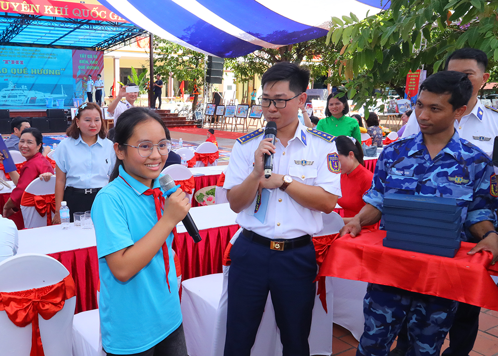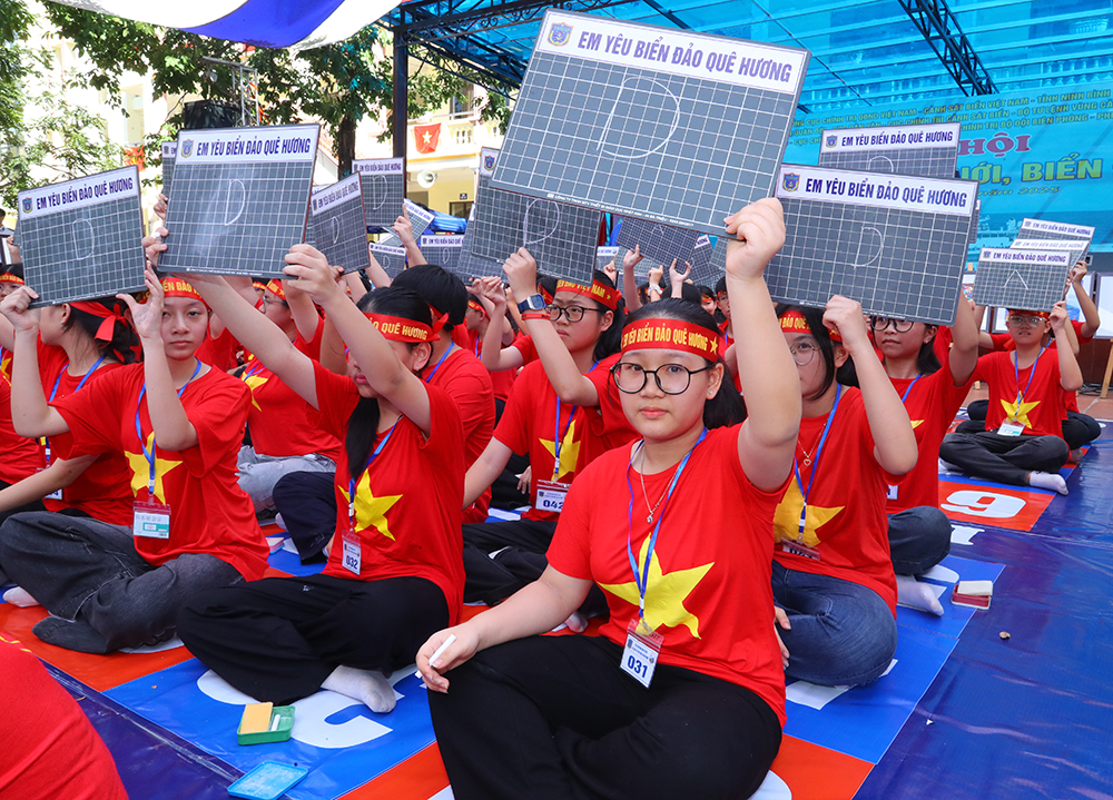 Các em học sinh Trường THCS Lý Tự Trọng, Lê Hồng Phong và Trương Hán Siêu tham gia thi Cuộc thi “Em yêu biển, đảo quê hương”.
