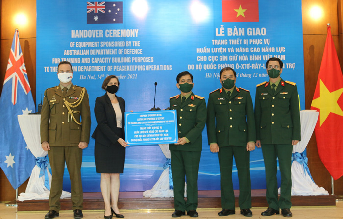 (Bqp.vn) - A ceremony to hand over training equipment sponsored by the Australian Department of Defence for training and capacity building progress to the Vietnam Department of Peacekeeping Operations was held in Hanoi on December 14.