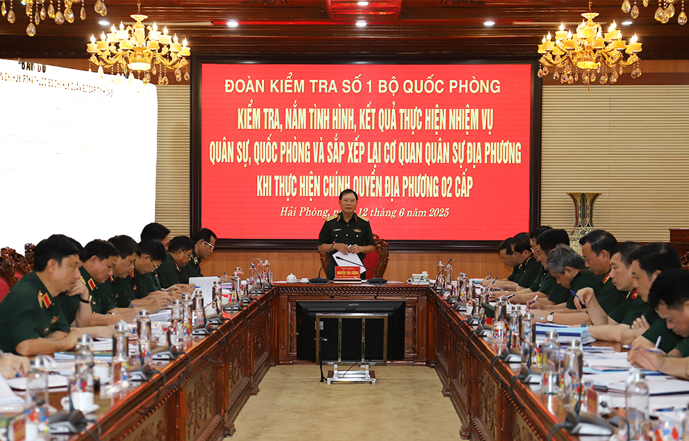 (Bqp.vn) - Sáng 12/6, Đoàn kiểm tra số 1 Bộ Quốc phòng do Đại tướng Nguyễn Tân Cương, Ủy viên Trung ương Đảng, Ủy viên Thường vụ Quân ủy Trung ương, Tổng Tham mưu trưởng QĐND Việt Nam, Thứ trưởng Bộ Quốc phòng làm Trưởng đoàn đã kiểm tra, nắm tình hình kết quả thực hiện nhiệm vụ quân sự, quốc phòng và sắp xếp lại cơ quan quân sự địa phương khi thực hiện chính quyền địa phương 2 cấp tại Quân khu 3.