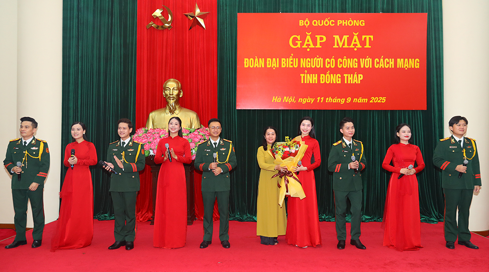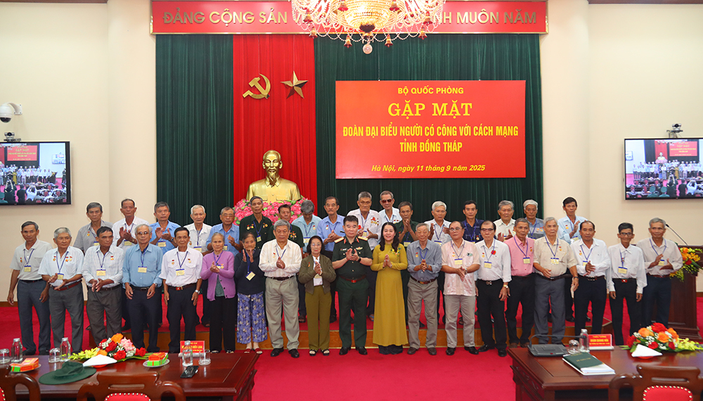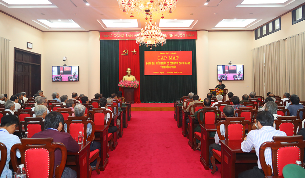 (Bqp.vn) - Sáng 11/9, tại Hà Nội, Bộ Quốc phòng tổ chức gặp mặt Đoàn đại biểu người có công với cách mạng tỉnh Đồng Tháp, nhân dịp đoàn ra thăm Thủ đô Hà Nội và đến thăm Bộ Quốc phòng. Thừa ủy quyền của Thủ trưởng Bộ Quốc phòng, Thủ trưởng Tổng Cục chính trị QĐND Việt Nam, Thiếu tướng Đoàn Quang Hoà, Cục trưởng Cục Chính sách - Xã hội (Tổng cục Chính trị) chủ trì buổi gặp mặt.