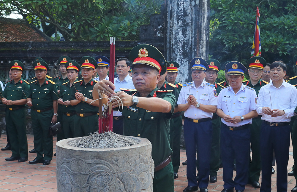 Thượng tướng Lê Quang Minh và các đại biểu dâng hương tưởng niệm tại Đền thờ Vua Lê Đại Hành trong Khu di tích Quốc gia đặc biệt Cố đô Hoa Lư.