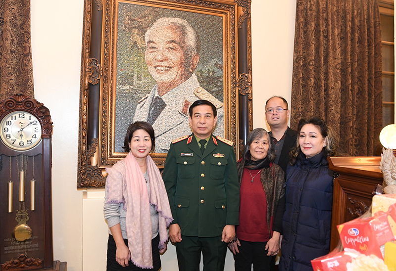 Đại tướng Phan Văn Giang chụp ảnh chung với thân nhân gia đình Đại tướng Võ Nguyên Giáp.