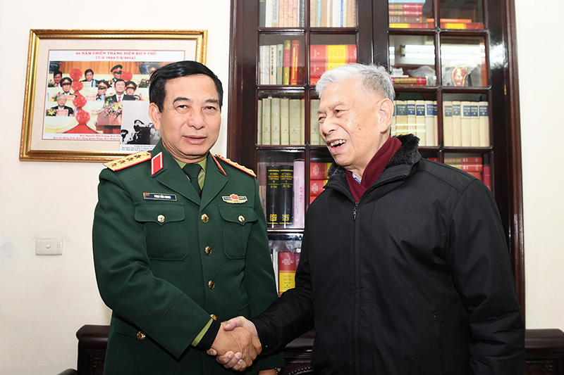 Đại tướng Phan Văn Giang thăm hỏi sức khỏe Trung tướng Đặng Quân Thụy.