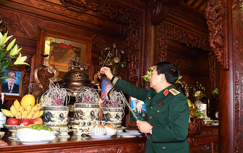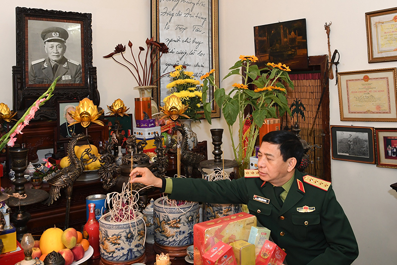 Đại tướng Phan Văn Giang đã đến thăm gia đình, dâng hương tưởng nhớ các đồng chí: Thượng tướng Lê Khả Phiêu, nguyên Tổng Bí thư, nguyên Chủ nhiệm Tổng cục Chính trị QĐND Việt Nam; Đại tướng Lê Đức Anh, nguyên Ủy viên Bộ Chính trị, nguyên Chủ tịch nước, nguyên Bộ trưởng Bộ Quốc phòng; các đồng chí nguyên Ủy viên Bộ Chính trị, nguyên Bộ trưởng Bộ Quốc phòng: Đại tướng Võ Nguyên Giáp, Đại tướng Văn Tiến Dũng, Đại tướng Đoàn Khuê, Đại tướng Phùng Quang Thanh; Đại tướng Chu Huy Mân, nguyên Ủy viên Bộ Chính trị, nguyên Phó Chủ tịch Hội đồng Nhà nước, nguyên Chủ nhiệm Tổng cục Chính trị QĐND Việt Nam; Đại tướng Hoàng Văn Thái và Đại tướng Lê Trọng Tấn, nguyên Tổng Tham mưu trưởng QĐND Việt Nam, nguyên Thứ trưởng Bộ Quốc phòng.