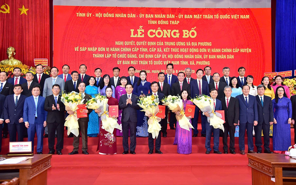 Tại buổi lễ, Phó Chủ nhiệm Ủy ban Công tác đại biểu của Quốc hội Tạ Thị Yên đã công bố nghị quyết, quyết định của Trung ương đối với việc sáp nhập tỉnh, xã, phường tỉnh Đồng Tháp; lãnh đạo tỉnh Đồng Tháp công bố các nghị quyết, quyết định của tỉnh đối với việc sáp nhập xã, phường; trao các quyết định và ra mắt Đảng bộ tỉnh Đồng Tháp và xã, phường.